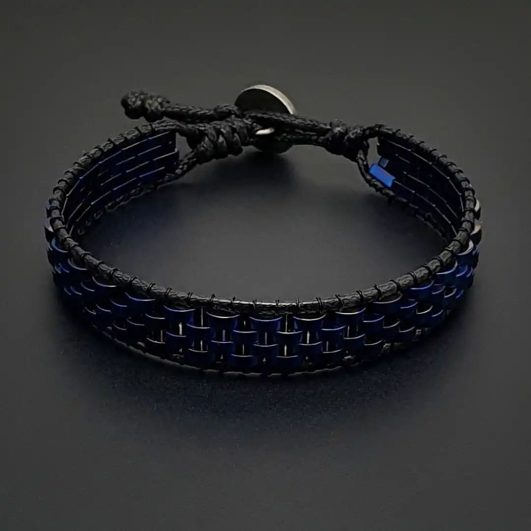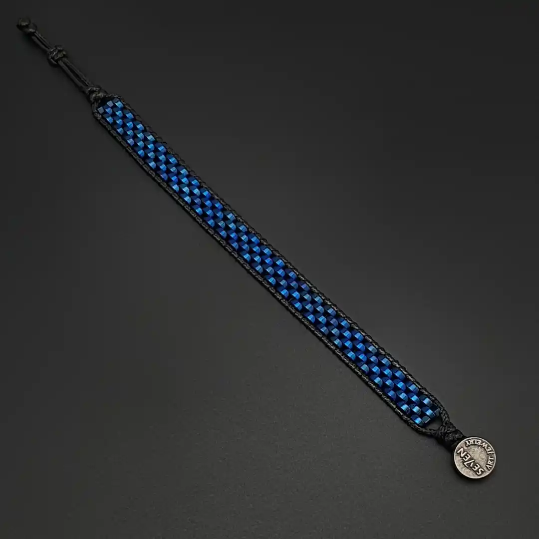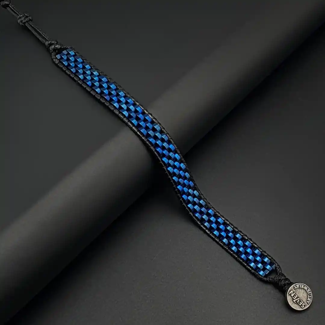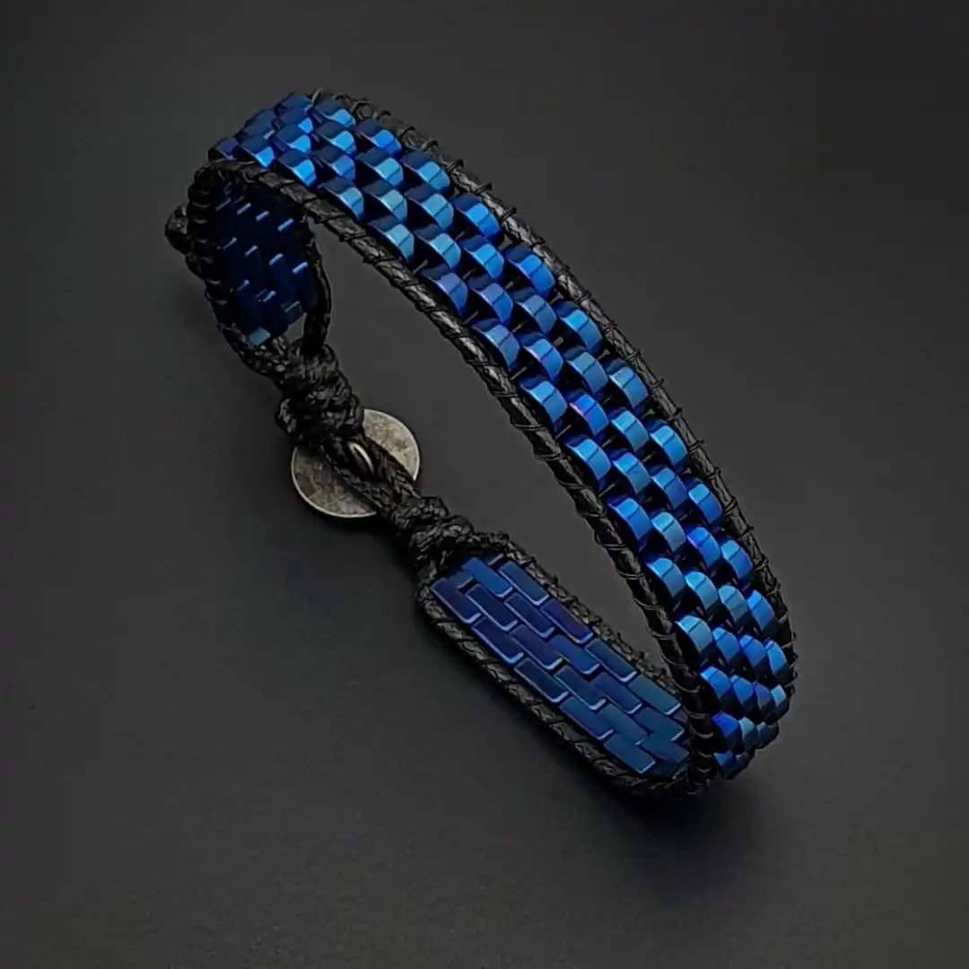 Bu özel bileklikte kullanılan hematit taşı, farklı ve dikkat çekici mavi tonlarıyla öne çıkar: