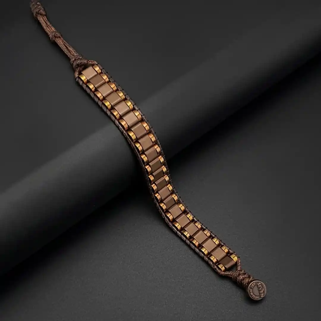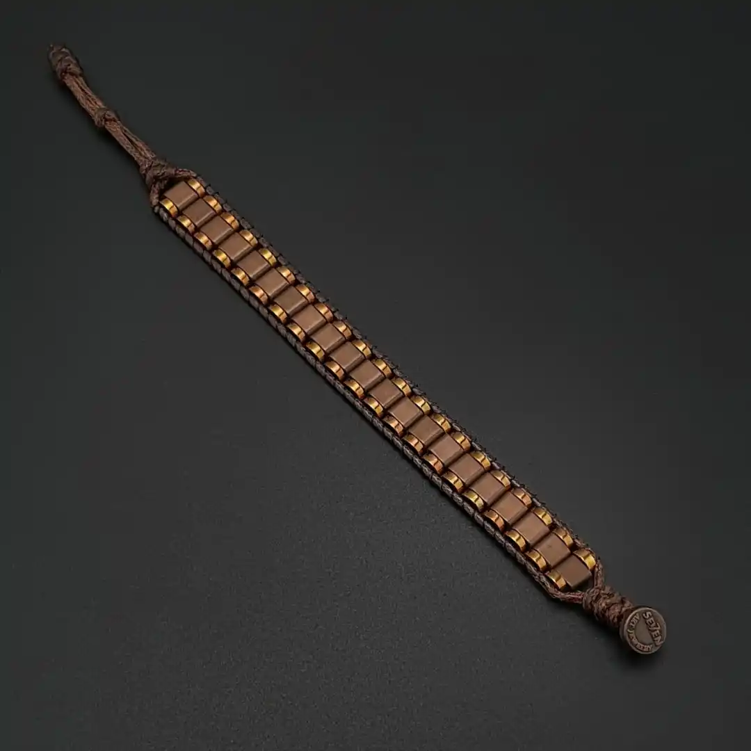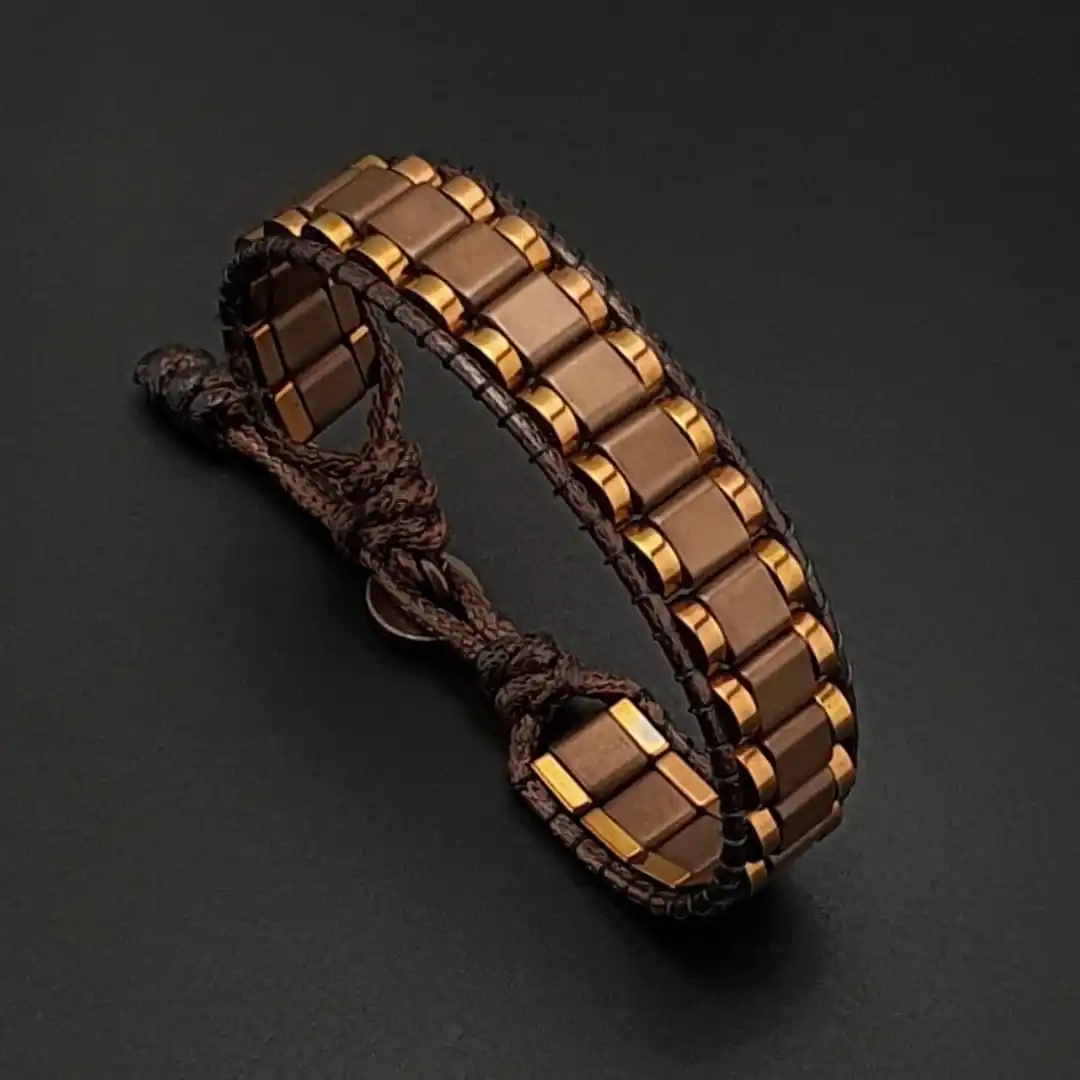 Hematit Taşı Kahverengi Bakır Renk Kenar Şeritli Bileklik