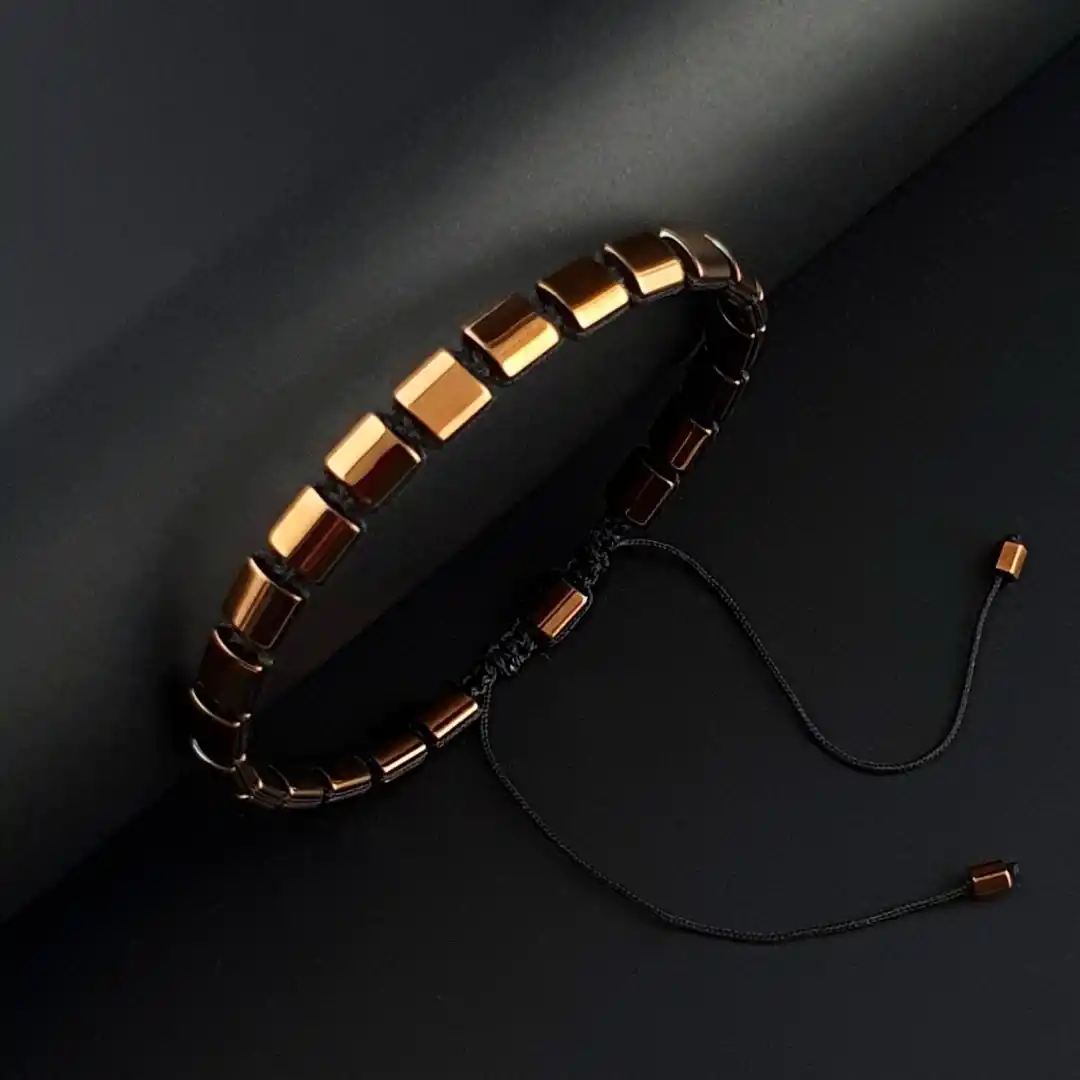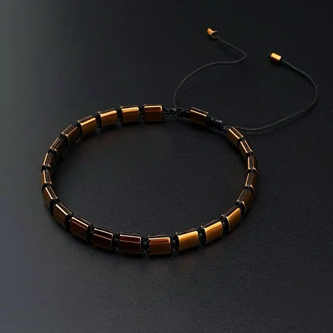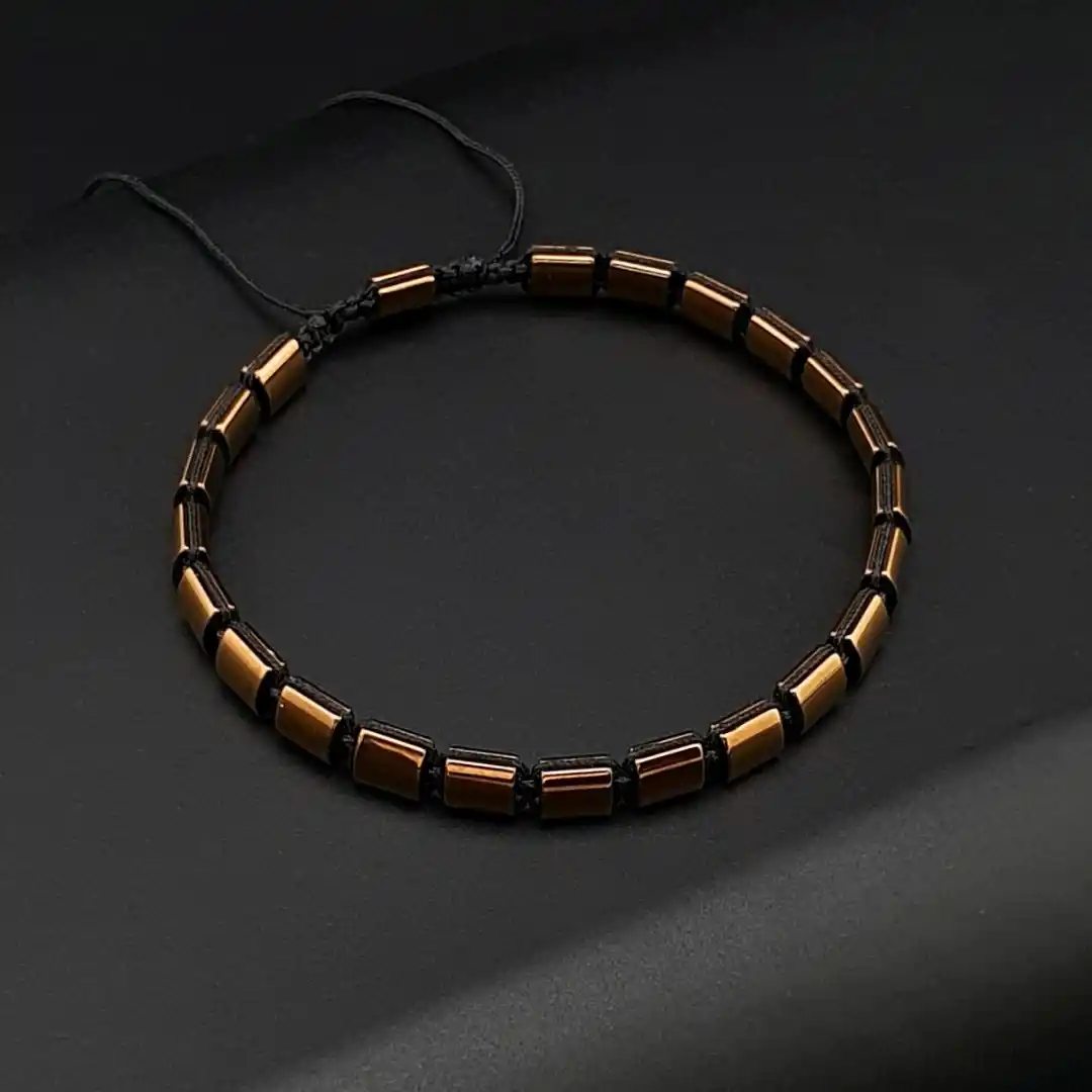 Şıklığı detaylarda arayanlar için tasarlanan Hematit Bakır Renk Kanallı Makrome Slim Bileklik, doğal hematit taşlarının modern parıltısını el yapımı makrome örgü ile bir araya getirir. Bakır tonlu hematit taşlarının kanallı yapısı bilekliğe hem karakter hem de sofistike bir ışıltı kazandırır. Slim formdaki tasarımı sayesinde tek başına minimal bir şıklık sunarken, diğer bilekliklerle kombinlendiğinde modern bir bütünlük oluşturur.