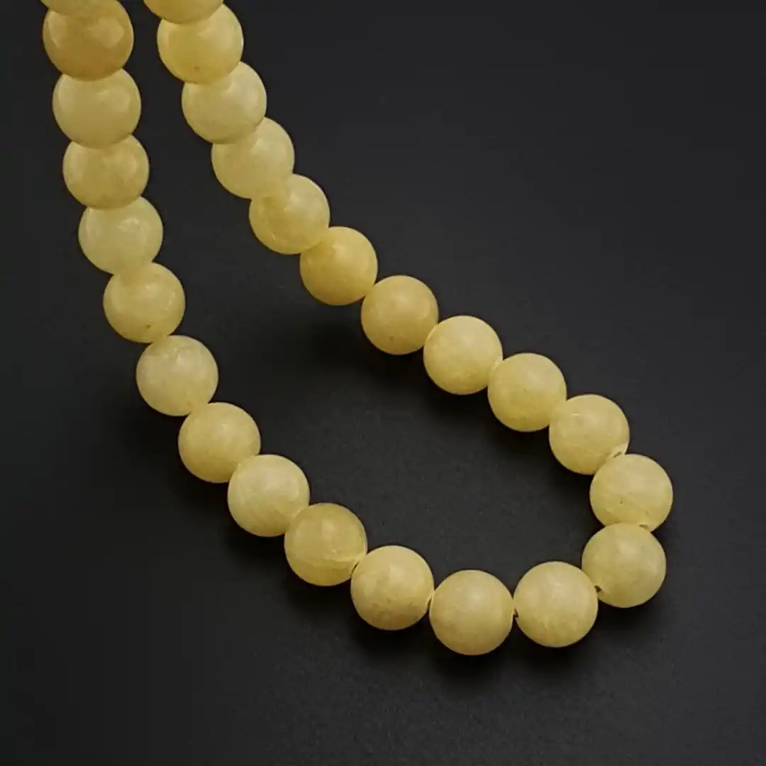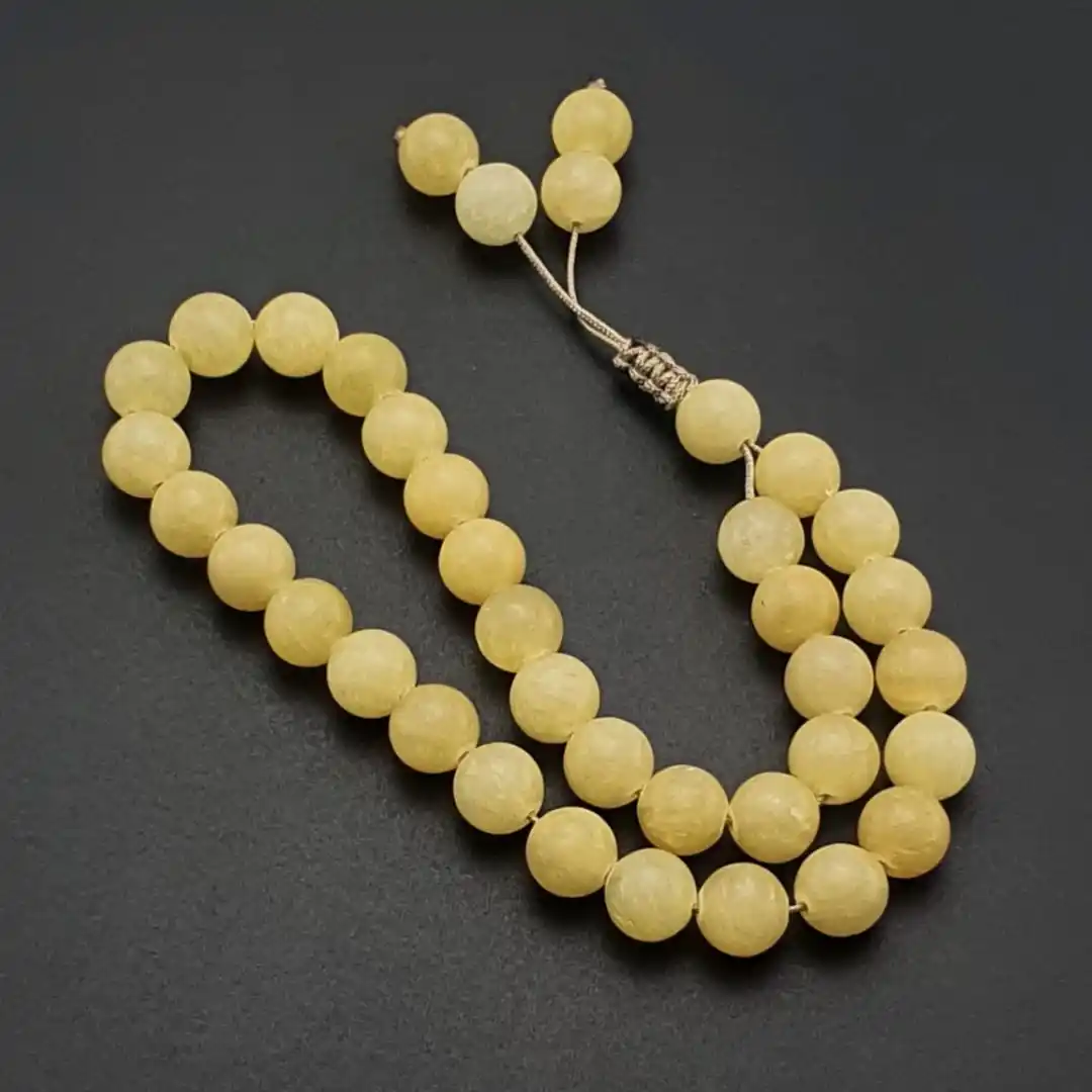 Doğal taş dünyasının sade ve estetik görünüme sahip taşlarından biri olan Kalsit, açık sarı ve bal tonlarıyla yumuşak, huzurlu bir görünüm sunar. Yarı saydam yapısı ve doğal ışık geçirgenliği sayesinde tesbihe zarif ve ferah bir hava kazandırır.
