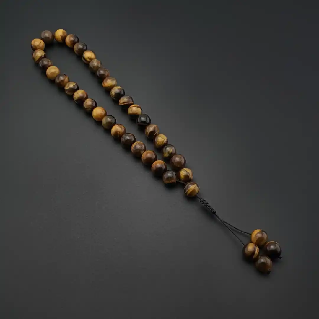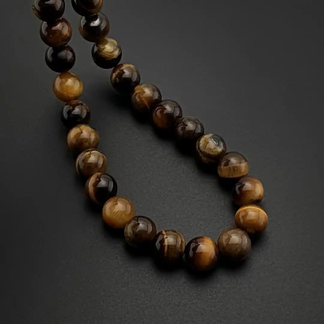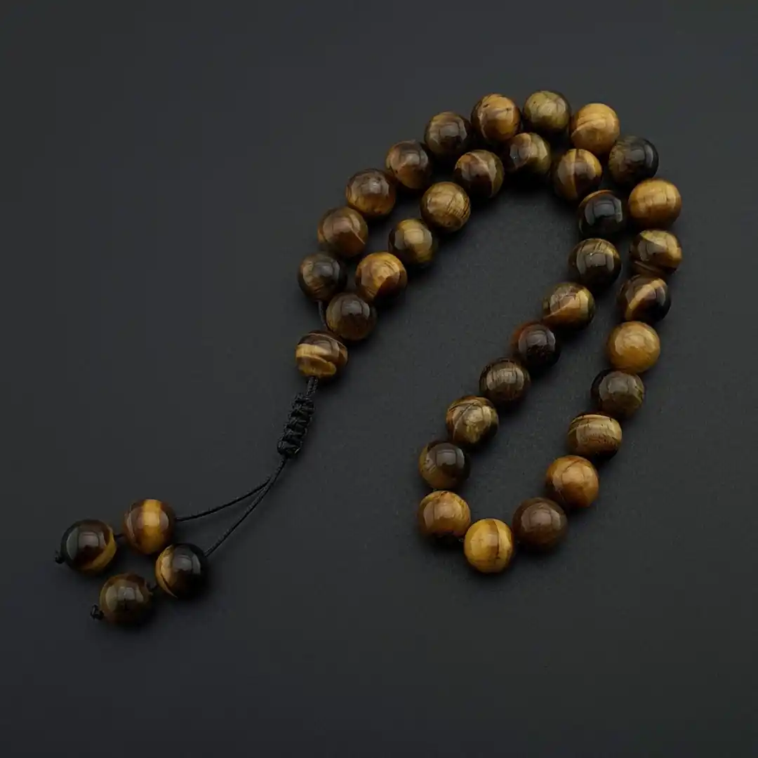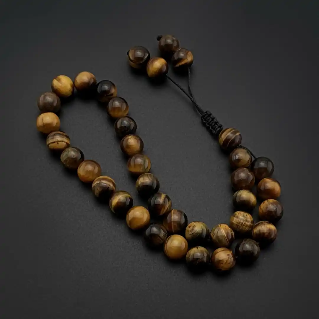 Doğal taş dünyasının en dikkat çekici ve en çok tercih edilen taşlarından biri olan Kaplan Gözü, yüzeyinde oluşan ipeksi ışık yansımalarıyla güçlü ve karizmatik bir duruş sergiler. Kahverengi ve altın sarısı tonlarının doğal geçişleriyle tasarlanan bu özel tesbih modeli, klasik ve maskülen bir stil arayanlar için zamansız bir tercihtir.