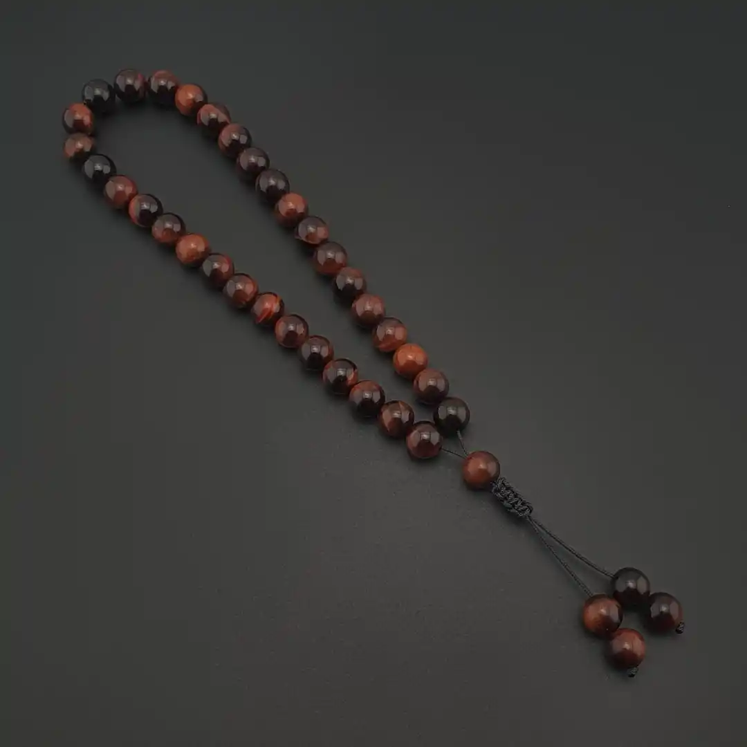 Dayanıklı tesbih ipi ile özenle dizilmiş olan model uzun ömürlü kullanım hedeflenerek hazırlanmıştır. İmame ve püskül detayları taşın kızıl tonlarıyla uyumlu şekilde tasarlanmıştır.