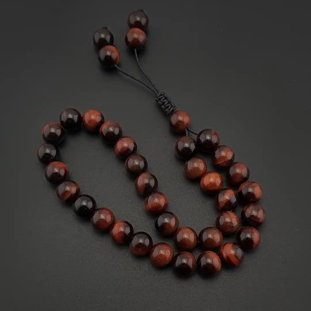 Doğal taş dünyasında göz alıcı yansımasıyla bilinen Kaplan Gözü, kızıl ve kahverengi tonların iç içe geçtiği canlı yapısıyla dikkat çeker. Işığa göre hareket eden ipeksi parlaklığı sayesinde her açıdan farklı bir derinlik sunar. Kızıl ton ağırlıklı bu özel form, tesbihe sıcak ve karizmatik bir karakter kazandırır.